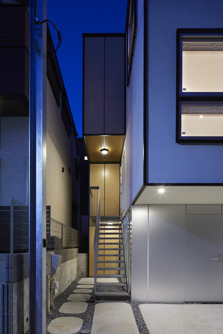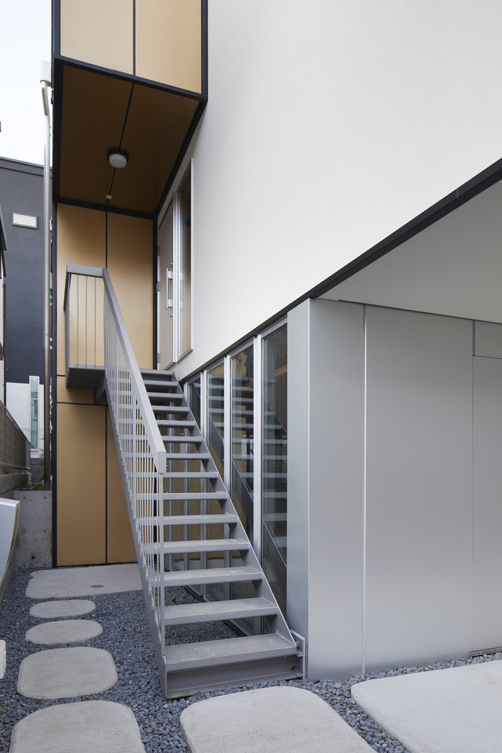 Tokyo is a center of architectural experimentation, the result of a particular combination of creativity, liberal regulations, and economics. Usually, creativity is assumed to come from designers willfully exploring interesting paths. Possibly that is true today, but in the 1960’s, when Tokyo was expanding with few controls, the city was built by its inhabitants directly. Highly experimental, extremely reactive, homes were pure reflections of daily life; a multi-family household built over a parking lot; a single room for rent built below the main house; a shop on the ground floor with private stairs extending directly from the curb; balconies and additions extended the homes beyond their core without nuance or subtlety. Primitive but inventive the homes spoke directly to the city. Ironic that with the flush of wealth Tokyo abandoned much of the freedom of that past for superficially better homes, picked from a catalogue of standard parts. Daily lives today fit into prefabricated symbols of domestic success, even though they are less reflective of actual need. More fascinating that regulations have become even more liberal in the intervening years, allowing more freedom. Barely taken advantage of, the gap between what is built and what is possible has yet to be explored. So here we look backwards so we can move ahead on another track. The house is a dance studio on the ground floor, with a home above, yoga space on the roof. The design is primitive, almost cartoonish – a fitting approach for the clients, who design and sell a series of famously mysterious and unique dolls with a global following. Making full use of Tokyo’s rules and regulations, the home maximizes space and volume on a typically constrained urban site, resulting in a simple plan – three single rooms, stacked one upon the other. The ground floor is buffered from the road by a reflective aluminum screen, and otherwise opened to its surroundings by continuous windows and mirrors. Dancers on this level, which is partially submerged in the sloping site, feel part of the city, not isolated. The home is accessed by steel stairs with an exaggerated landing on the 2nd floor acting as porch. Windows are placed economically to offer depth and light in an otherwise small area. No attempt is made to frame views because the city does not rest for long and views are fleeting. Garden and decks work with the interior to offer an un-mediated experience of the city. Formal experimentation is often lost in the chaos of Tokyo but we are entering another period of massive change. It is time to engage the city more directly.