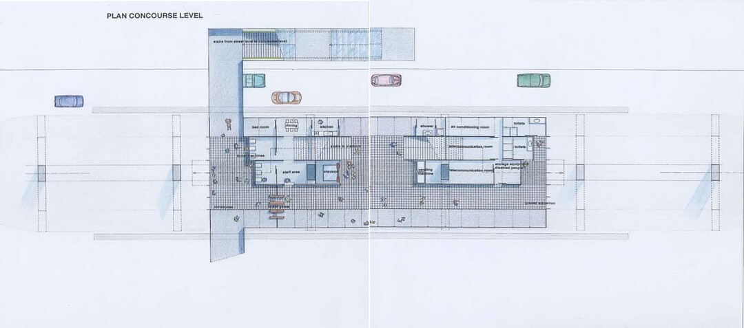 駅本体の設計には町を走っている線路のエンジニアリングスケールから、ヒューマンレベルのスケールへの移行が提案されました。その目的を達成するため駅は建物として三つの部分に分けられました。
